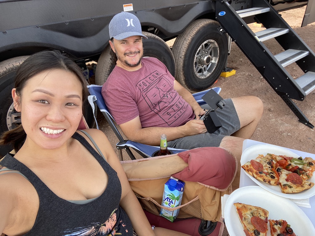 I love travel days! The drive itself is always so beautiful. We get to drive through so much scenery and see all the beauty that the US has to offer. I am just beyond thankful that we have this opportunity to go on these adventures and I am so happy we are both really loving this new lifestyle we are living. After a short beautiful drive to Moab, we stopped at Willow Springs Trail BLM campground that Mike found for a night. We tried to go to Arches National park after setting up but they were closed by the time we arrived, so instead we drove around a bit and found a short little trail to hike. We enjoyed a beautiful fire and sunset before the winds picked up and sent everyone into their trailers. The winds have been pretty bad every where we’ve been. Something we didn’t really have to deal with in California. Checking weather daily, and sometimes hourly has become a thing for us now. The weather is always so unpredictable!