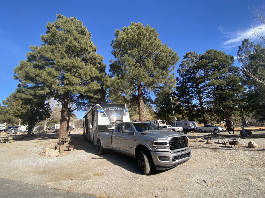 We’re definitely learning some things about being in the cold weather living in an RV. Mike had to go pick up an electric hose for us. That keeps our hose from freezing over, however the water spigot freezes every night. To counter that, Mike has filled up our fresh tank so that we can just use our pump in the morning. Our back/garage water pipes froze over the first night we think. Our rig is winterized to keep the pipes up front warm so that they don’t freeze over and possibly leak, but we have to keep an eye on the back pipes. Thankfully, we’re learning and making it work for us. Hoping we’ll do alright in the next couple destinations.