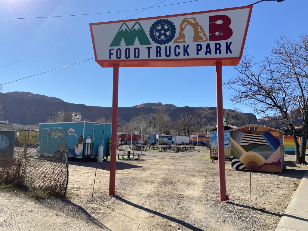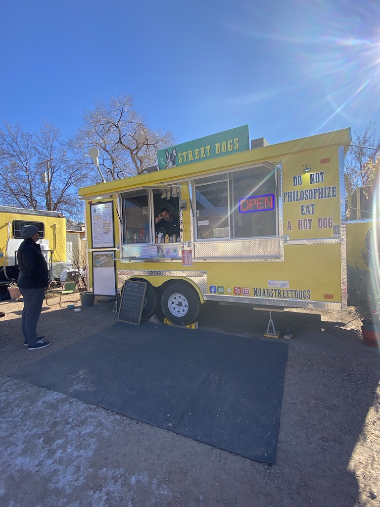There was just one day that we were able to get away and go grab some lunch. We went to Moab Food Truck Park thinking we’d have a good selection to choose from. Due to the cold weather, many stores & restaurants are not open. Luckily there was one little food truck that was open. Moab Street Dogs They were playing some french jazzy tunes and enjoying the beautiful sunny day. The french couple who owned the food truck was such a delight to be around. They had some yummy dogs to choose from. Mike had the New Yorker and I had the Chili Mac n Cheese! It was the only place we went to besides the day we arrived. The days flew by this week.