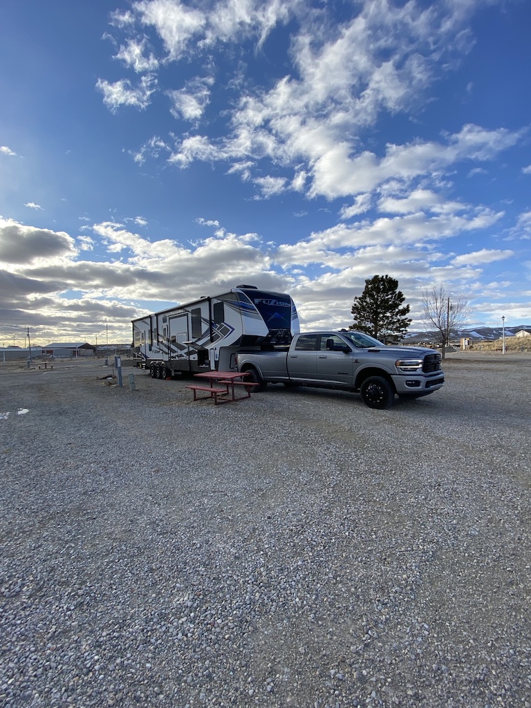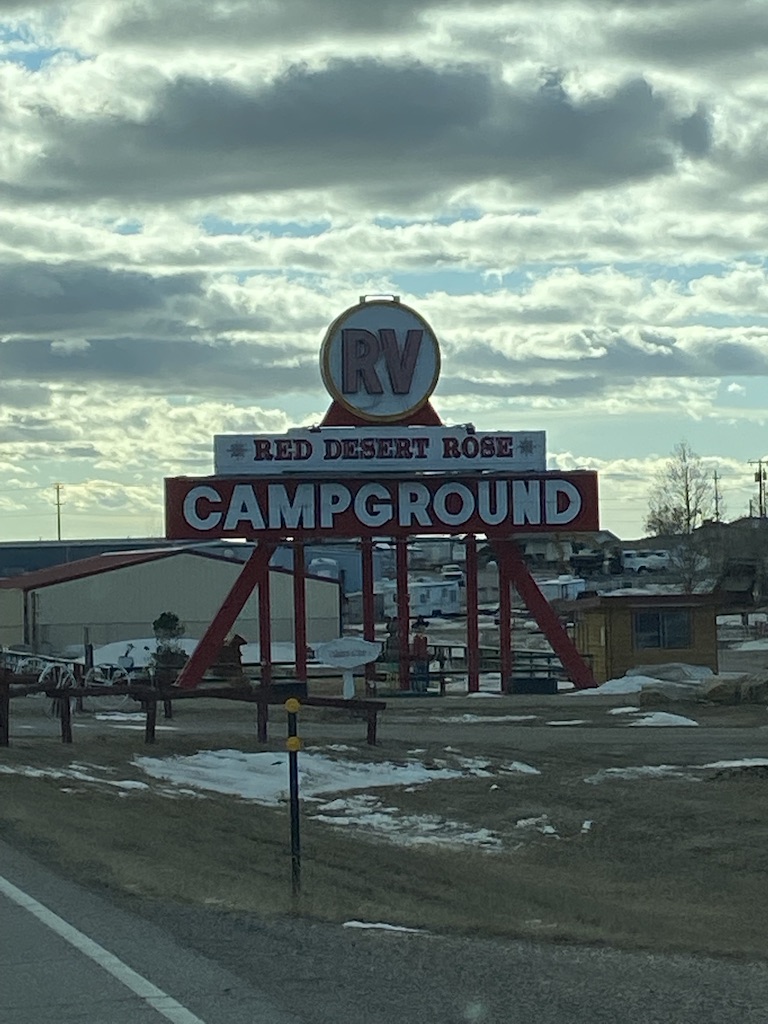 Our drive from Utah to Wyoming was a quiet one. Almost no one on the road for most of the time that we were on the road. It was so quiet, Mike actually convinced me to take over and drive for a bit! He has been wanting me to tow just so I can get a feel for it, in case of an emergency. I have not been comfortable with trying until this trip. On the empty road, he found a pullout and pulled over… I hopped in the driver seat! Off we went, I towed the RV!!! It was awesome timing because I only towed for a little over half an hour and I towed us from Utah into Wyoming! So awesome to be able to say I towed the rig in two states! haha! I quickly pulled over as soon as I saw an opportunity before we had to exit and get onto the busier roads. Mike wasn’t kidding, it tows like a dream. You almost kind of forget it’s back there because it doesn’t push or pull you at all! We stayed at Red Desert Rose Campground for one night.