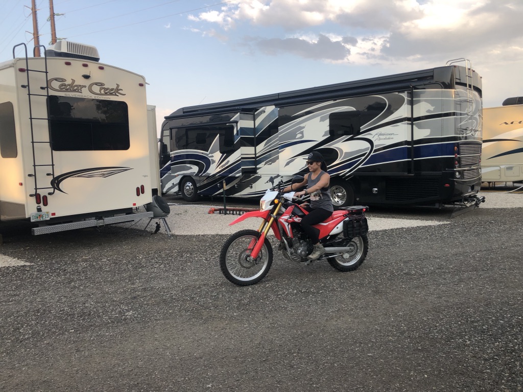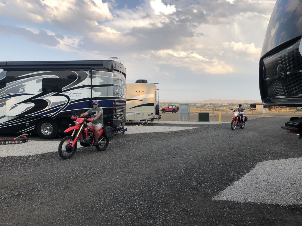 Craig and Felicia travel often in their trailer so it was so cool for them to plan to make a stop in Cody to visit us as they were making their way up to Montana for their summer travels. We went to Bubba’s BBQ for dinner shortly after they arrived. Definitely had a few laughs there to start out the night. They did some whiskey tasting from Mike’s fine collection. The guys got to catch up a bit as we chatted the night away. They came on a Monday night and left on a Thursday morning, that meant we couldn’t do too much as we had to work while they explored. Craig and Felicia went on a scenic ride on their street legal dirt bikes, on ‘America’s ultimate high-country-route, a trip between Red Lodge and Yellowstone, The Beartooth Highway. This is definitely something I’d love to come back to see, but we definitely need dirt bikes/motorcycles for this! I had so much fun riding Felicia’s bike around the neighborhood nearby. Thanks again, Felicia! We ended our time together by their fire-pit with dinner, Pie for dessert and had a great time together. Always nice when Mike gets to see his HS buddy and catch up! Thanks for visiting guys!