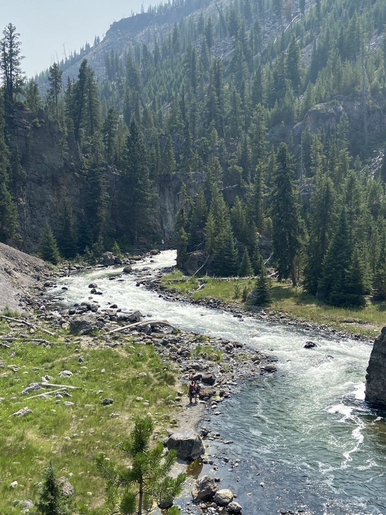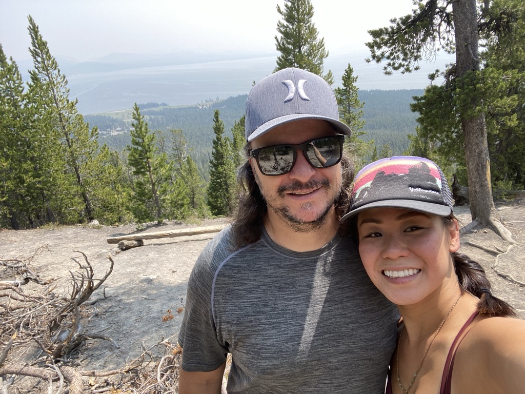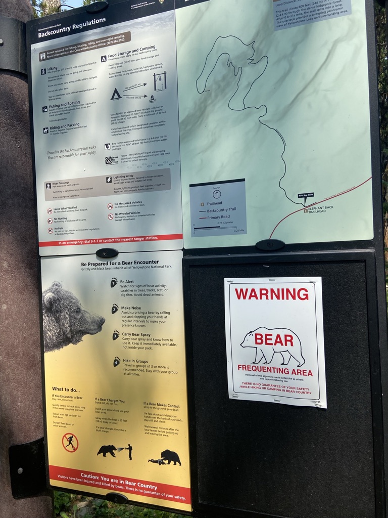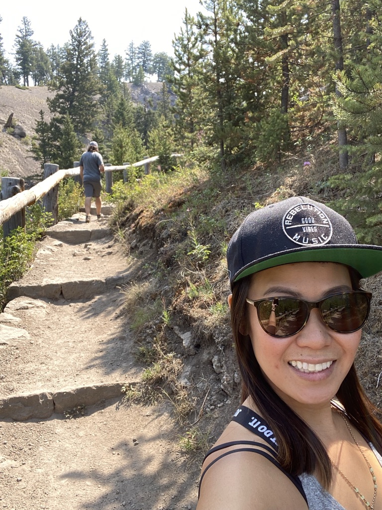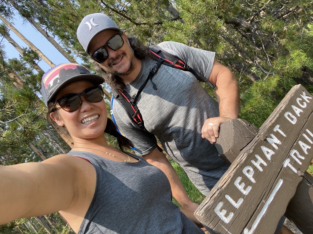 The following morning we went for a hike at Elephant Back Trail. This 3.5 mile loop trail leads you up to an amazing panoramic view of Yellowstone Lake. There are a few switchbacks and it definitely was a lot of uphill climbing. But how else would you get to such an amazing view of Yellowstone Lake! This hike took us about 1.5-2 hrs from start to finish. We did stop to enjoy the beauty and had a nice rest before descending back down. We are guilty of not having any bear spray with us on this hike. Definitely need to make sure to carry Bear Spray for each adult when hiking in wildlife’s backyard next time. All these adventures are so much fun, but we definitely need to remember to be smart along the way! We’ve already bought ourselves a couple of sprays as we want to continue to go on these amazing hikes. It’s so much fun to be out here surrounded by nothing but nature. Knowing we might come across wildlife makes it that much more exciting. I just was hoping to see Elk and maybe a Moose. (see pics below to see if you can spot the ‘moose’ we saw) Still soaking in all the beauty that Yellowstone had to offer. I hope the photos I’ve shared will only excite you to want to visit yourself someday!