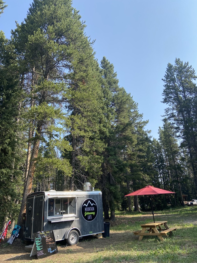 We went back to Yellowstone for the weekend! This time we decided to stay a night in the park. Yellowstone is such a large park, over 2 million acres large. Last weekend when we went, it was exhausting for Mike to have to drive all day and then also drive home through the mountains. We booked a cabin at Canyon Lodge! It made it worth it since we also got to spend Sunday morning/afternoon there before heading back into town! Thankfully I did some research and saw that there was a road closure from Tower Roosevelt to Canyon Village. This is something that is easy to find on the NPS.gov website on each National Park’s Front Page. You just have to look vs just showing up. That meant we would want to enter the park through the North-East Entrance vs the East Entrance we went through last weekend. The drive there was about 1.5 hours, about half an hour longer than the other entrance. We were so happy to come across a Breakfast Burrito sign right before getting to the park. Mountain Getaway Eats is a cute little family owned Food Truck. Perfect stop for a cup of delicious coffee and a breakfast burrito! The owner had his son helping him out that day. He was so cute, “look dad, I got a tip on my very first day!” He was probably about 10 years old if I had to guess. We’re glad we got to make that little boys day! Definitely would stop here again if we come this way again into the park. He also mentioned building cabins there soon, check out his FB Group if that’s something that would interest you when you come visit Yellowstone!