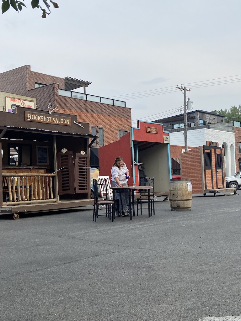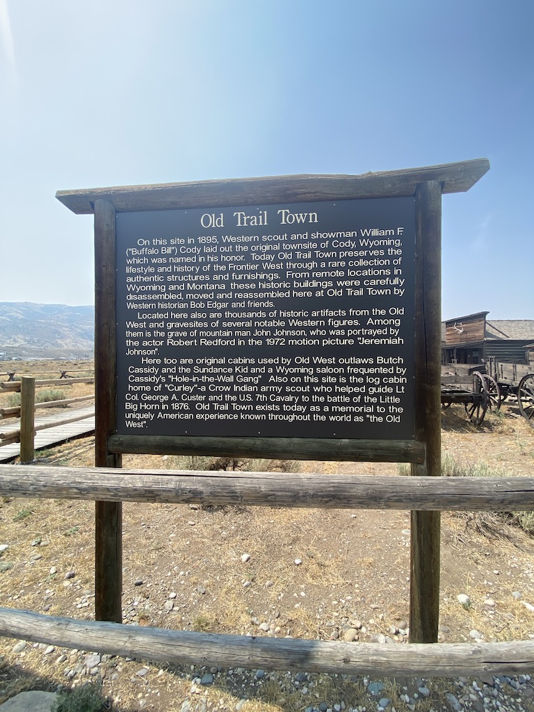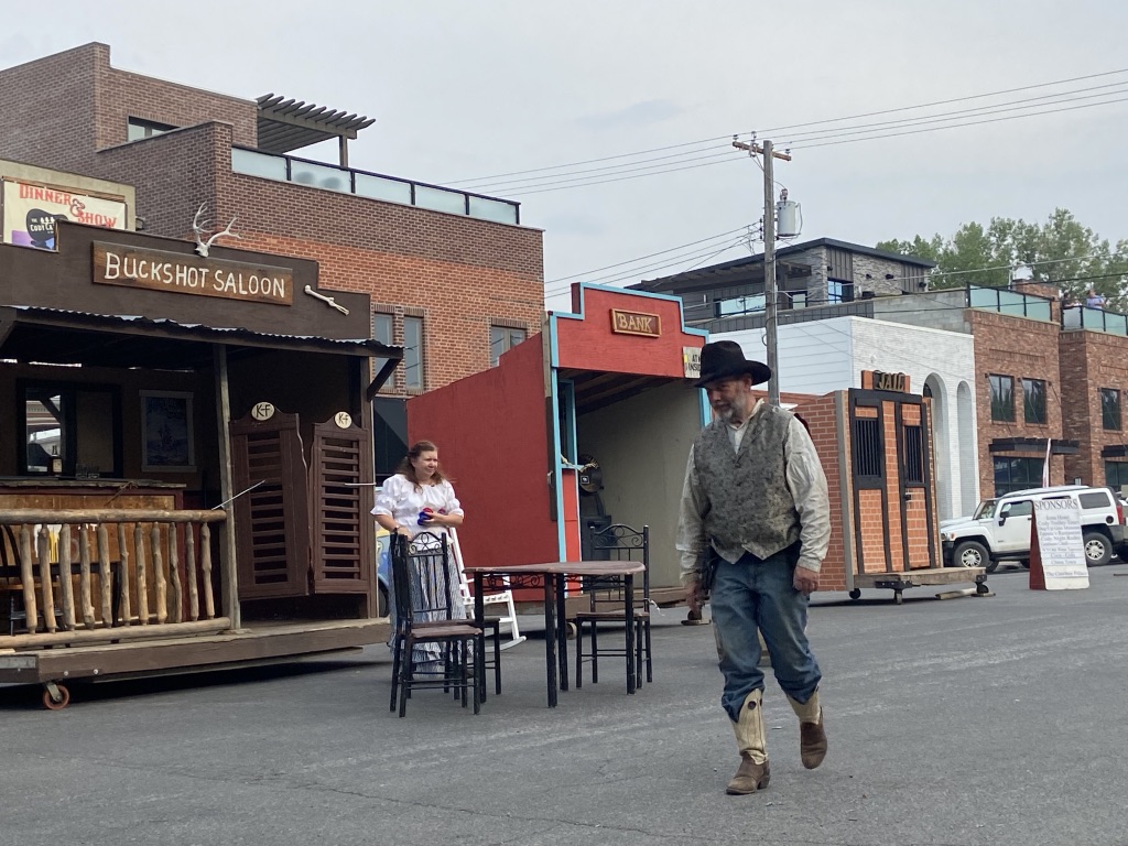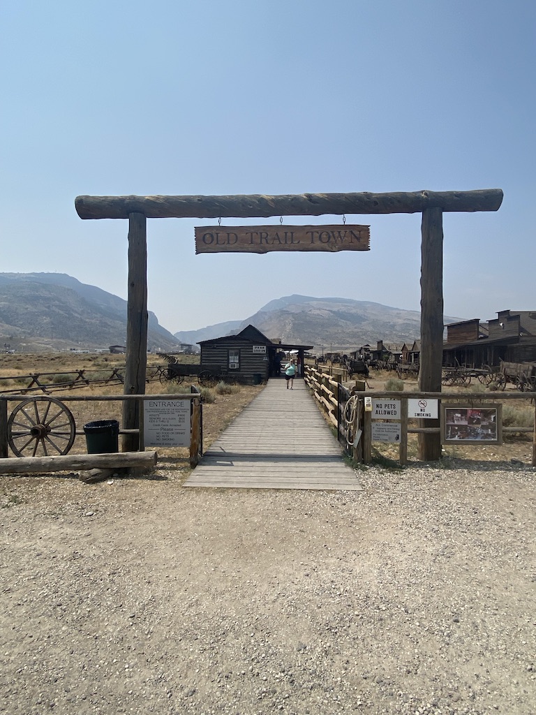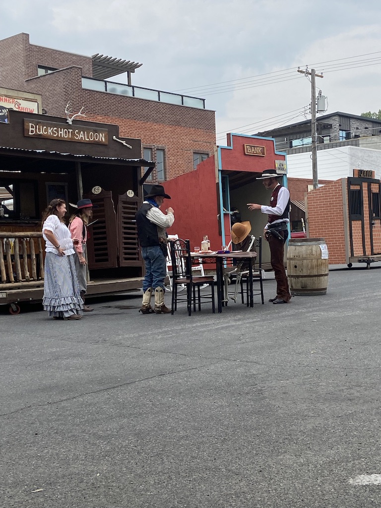 The following day, Sunday, we wanted to visit the Cowboy Bar in the city of Meeteetse. This bar was established in 1893. Mike heard from a neighbor that you can see bullet holes from a Butch Cassidy shoot out. I was definitely interested in hearing more about the history. We drove there, only to realize they were closed. Sadly, we are learning that we need to double check times especially on Sundays. So instead we went to check out another gem, Old Trail Town, back in Cody. This was more than what we expected. Old Trail Town is formed by 27 cabins. Many of these cabins were completely taken apart and moved to this site to be reassembled. These buildings date from 1879 – 1901. They also moved 6 gravesites to this location. There is a huge collection of old, ancient, authentic artifacts to be seen here. During the week one night, we finally made it out to see the Gun Fight in downtown Cody. It was a cute little town show that they put on daily at 6pm. It’s fun for the tourist and the kids.
