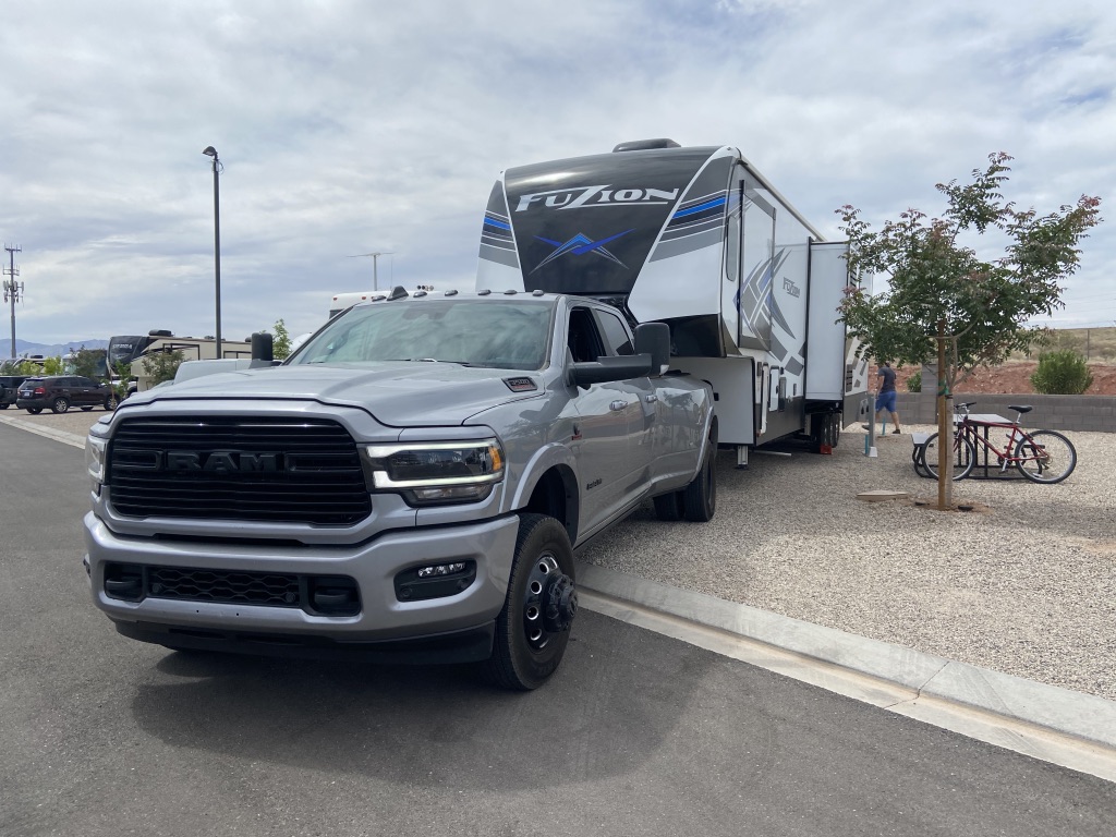 The drive from Arizona to Utah was amazing! You go through so much beautiful red rock that you’re just blown away from the beauty. We made a quick stop to stretch our legs at Horseshoe Bend before getting to our BLM rest stop for the night after our first travel day. Horseshoe bend is such a beauty. So happy we could make a quick stop before settling down for a night. Mike found a beautiful BLM campground, Twin Hallows Canyon BLM in Mount Carmel, Utah. We found a cozy spot right next to a horse corral and set up for the night. We didn’t think any one would come use the corral, but it was such a beautiful sight the following morning when I peaked out our window to find two beautiful horses! It was like waking up in the dream! I love horses!! I cut up an apple and went outside to feed the two cuties a little treat. That definitely made my morning! Boon-docking in these random places have been my favorite part of the trips! After that eventful morning, we packed back up, hooked up and made our way to our new Home Sweet Home for the month at Southern Utah Rv Park.