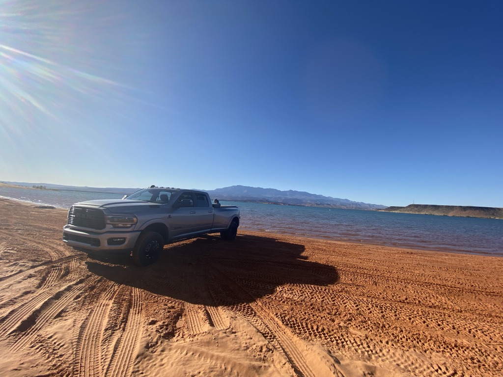 Sand Hollow State Park was definitely one of our favorite spots! They have such a beautiful lake. There’s a rocky area that you can go enjoy the water in as well as a beach side to the lake where people can drive their trucks out and hang out for the day. We did this a few times, and took a few of our guest there because we love it so much! This is also where Mike and I also had a spontaneous mini adventure going 4x-ing and ended up in a soft spot! We were just hundreds of feet from the street and we got stuck in the sand! It was late, around 8 but the sun sets around 9 in Utah, so we still had a bit of light out. Thankfully, Mike knew of a Tow Truck company near by that he called. Matt’s Off-road Recovery! Matt showed up in about half an hour, just as the sun was setting and pulled us out easily! Awesome thing was we also got a ‘free’ t-shirt out of it! Update: we are YouTube famous! Check us out on Matt’s page!